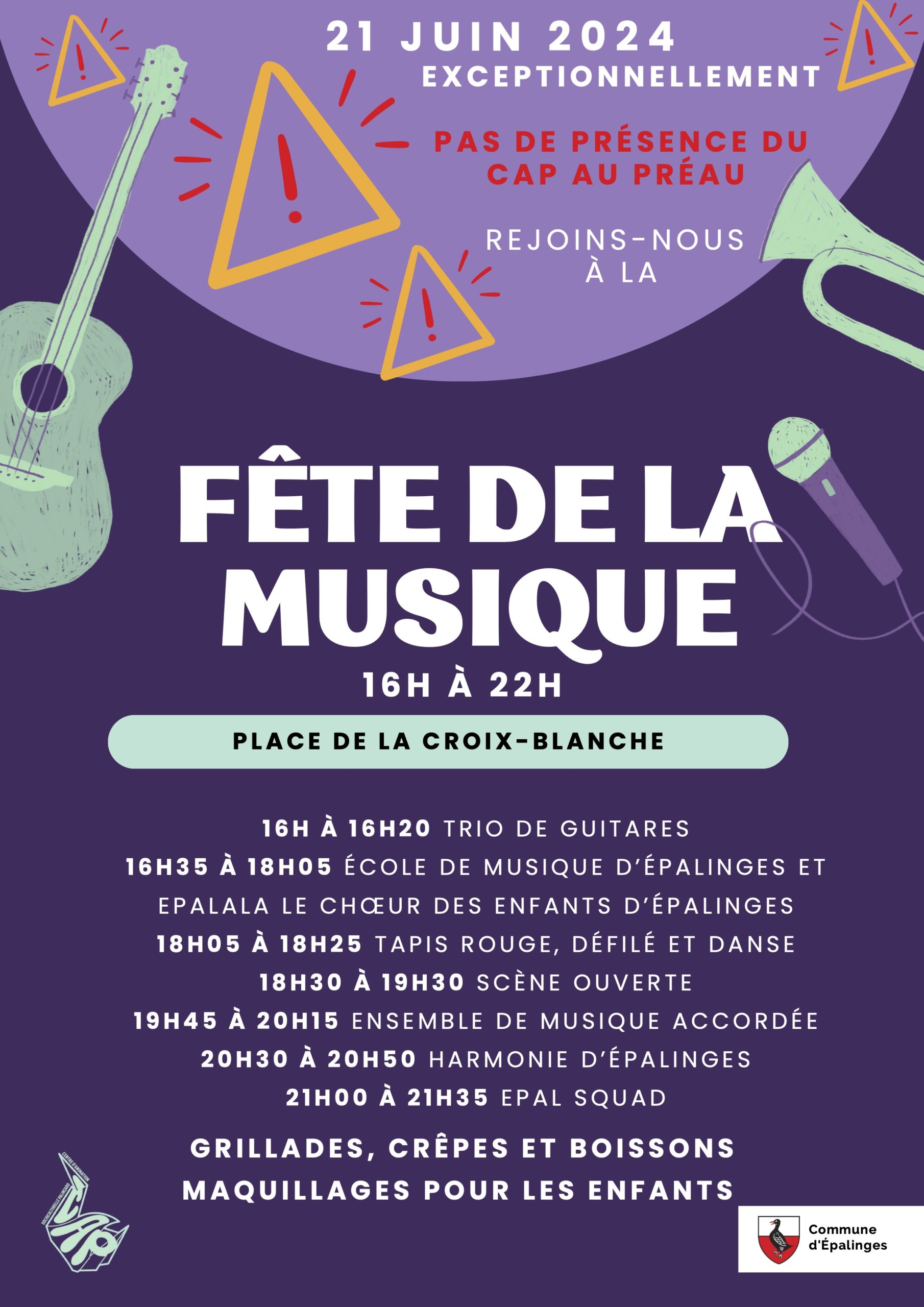 Les vendredis au CAP comme tu le sais, c’est trop bien déjà de base ! Et bien, imagine, cette année le jour de la fête de la musique va tomber sur un… Devine… Oui un vendredi ! Du coup, belle fête en perspective sur la place de la Croix-Blanche ! Au programme des concerts, des stands de boissons et de nourriture, un moment de scène ouverte et pleins d’autres animations et de possibilités de participer pour toi, tes ami.e.x.s et ta famille !
