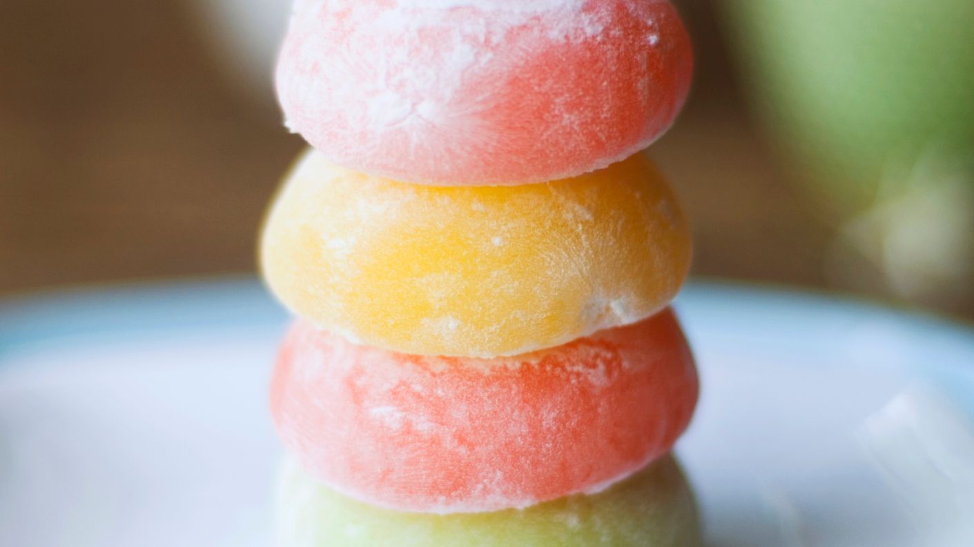 C’est un dessert japonais soyeux comme un petit chat que tu ne connais peut-être pas et on a décidé d’essayer d’en cuisiner ! Ils peuvent être au thé vert, à la vanille ou au chocolat et pour les fabriquer, à ce qu’il paraît, on utilise de la farine de riz gluant… Bizarre, oui, mais n’aie pas peur, ils sont fourrés à la glace, donc forcément, ça peut pas être mauvais.